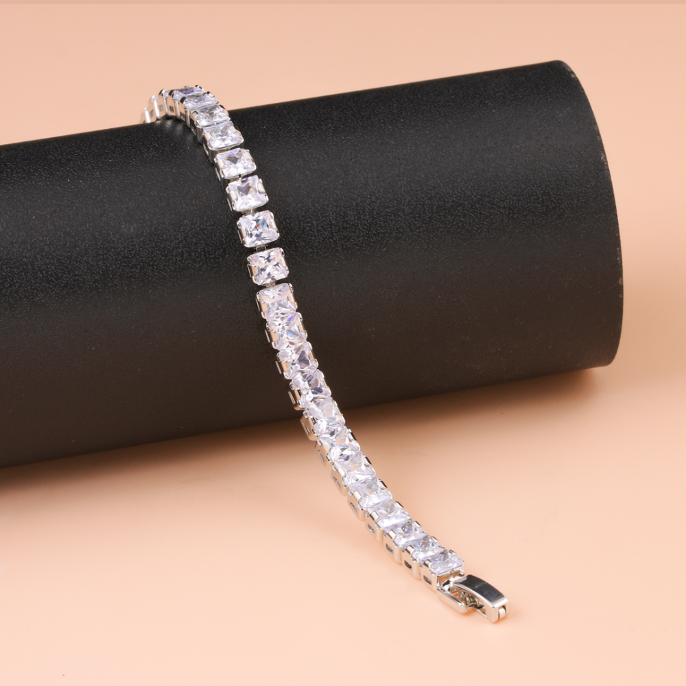 تألقي بأسورة بديل الذهب بريق الألماس المرصعة بأحجار الزركون الفاخرة بقصة مربعة، لتضفي لمسة أنيقة وبراقة على معصمك. تصميم كلاسيكي يجمع بين الفخامة والعصرية، مثالي لكل مناسبة.