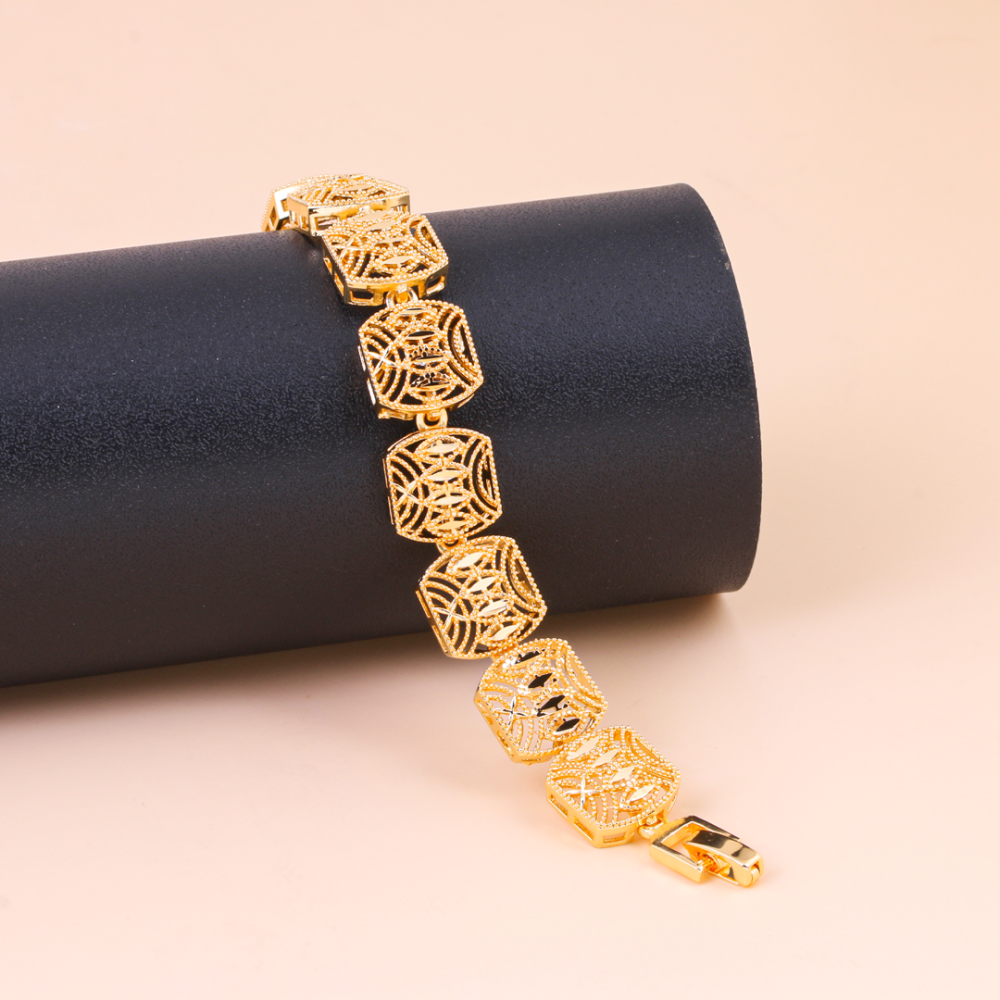 أسورة لمسة الماس بتصميمها الفريد المستوحى من الأشكال الهندسية، تمنحكِ إطلالة راقية وعصرية تناسب جميع المناسبات. صنعت من خامات عالية الجودة مع طلاء ذهبي فاخر، لتبقى متألقة بجاذبيتك في كل وقت.