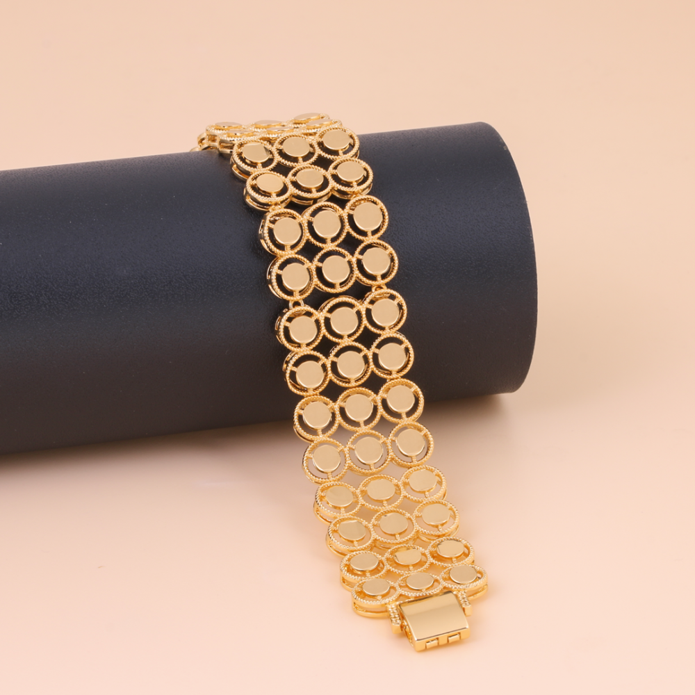 أسوره ذهبيه عريضه آمنه على البشرة و وتأتي بتصميم