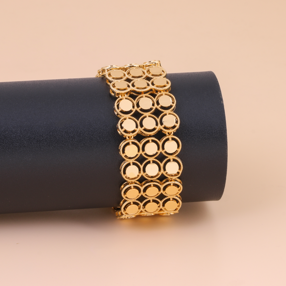 اطلبي الان أسوره ذهبيه عريضه تملى معصم اليد /من كنوز لإطلاله فخمه ومميزه الآن.