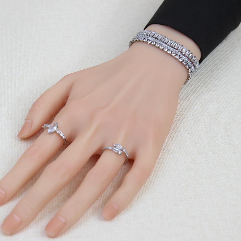 طقم اساور التنس الفضيه وخاتمين زركون ناعم – فخامة تنطق بالأنوثة