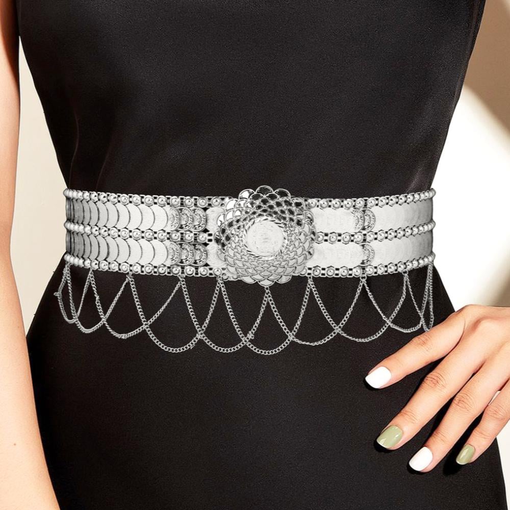 أضيفي لمسة من الأناقة مع حزام بديل الذهب جنيهات رص فضي، واجعلي إطلالتك متكاملة ومميزة في كل مناسبة.