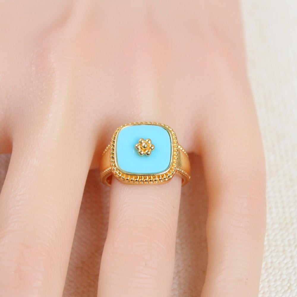 احصلي الآن على خاتم بديل الذهب بحجر الفيروز الأزرق الرائع، وتمتعي بإطلالة فريدة تجمع بين الفخامة والروح العصرية!