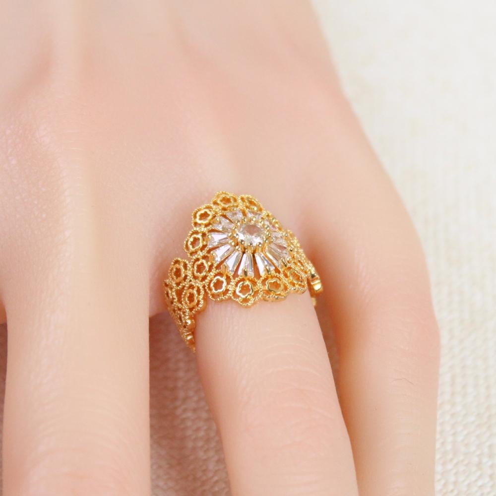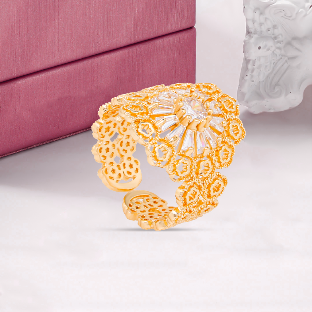 قطعة تتلألأ في الضوء كما تتلألأ الملكات في الحكايات... خاتم بديل الذهب شعاع التاج هو تحفة فنية ملوكية مصممة لتُقال لا لتُخفى.