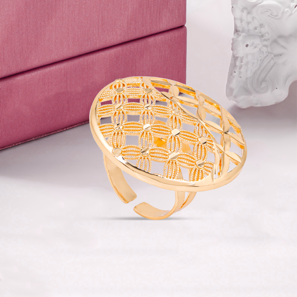 - شبكة الزخارف تخلق تأثيرًا بصريًا رائعًا وتُضفي على الخاتم مظهرًا عصريًا.