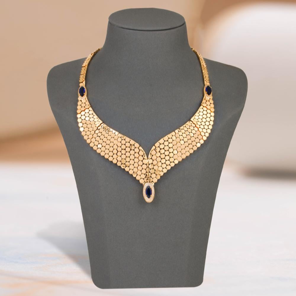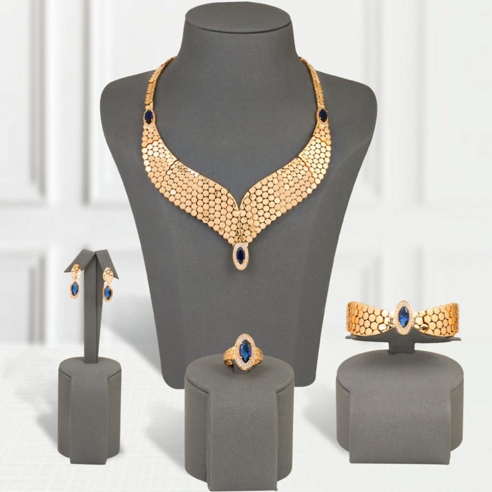 طقم بديل الذهب جناح الصقر أزرق هو المزيج المثالي بين القوة والجمال، بين الهيبة والرقة، ليكون اختيارك الأمثل في كل ظهور تُريدين فيه أن تُبهري دون أن تتكلّمي.