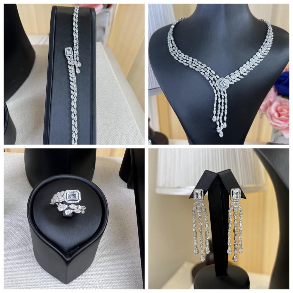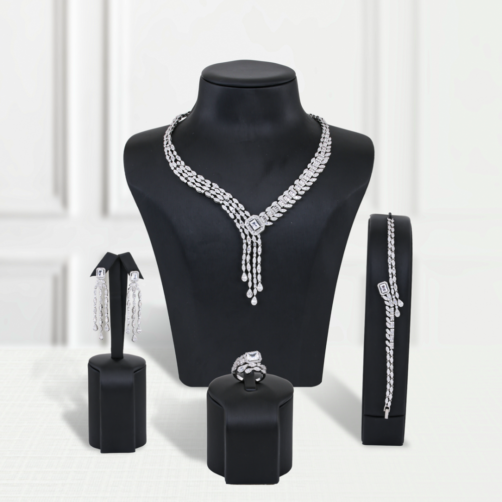- المكونات: قلادة، أقراط، خاتم فري سايز يناسب جميع الأحجام، وسوار