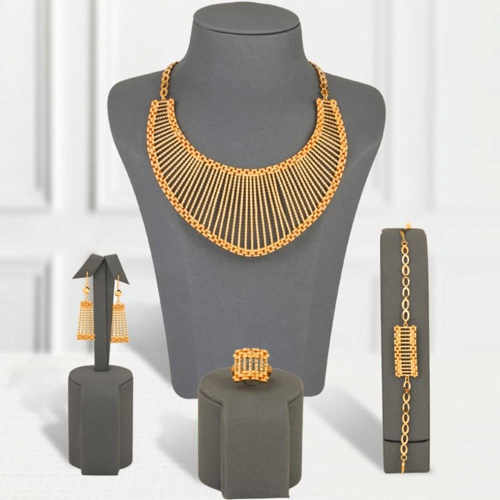ارتقي بإطلالتك مع طقم بديل الذهب شمس الذهب المميز، تصميم يجمع بين البساطة والرقي لتخطفي الأنظار في كل مناسبة.