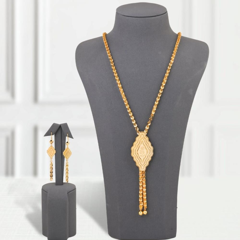 اختاري عقد بديل الذهب الشكل الهندسي من كنوز وكوني دائمًا متألقة في كل مناسبة. تمتعِ بالفخامة والجمال الآن مع هذا الطقم الفاخر الذي سيجعل إطلالتكِ تتألق!