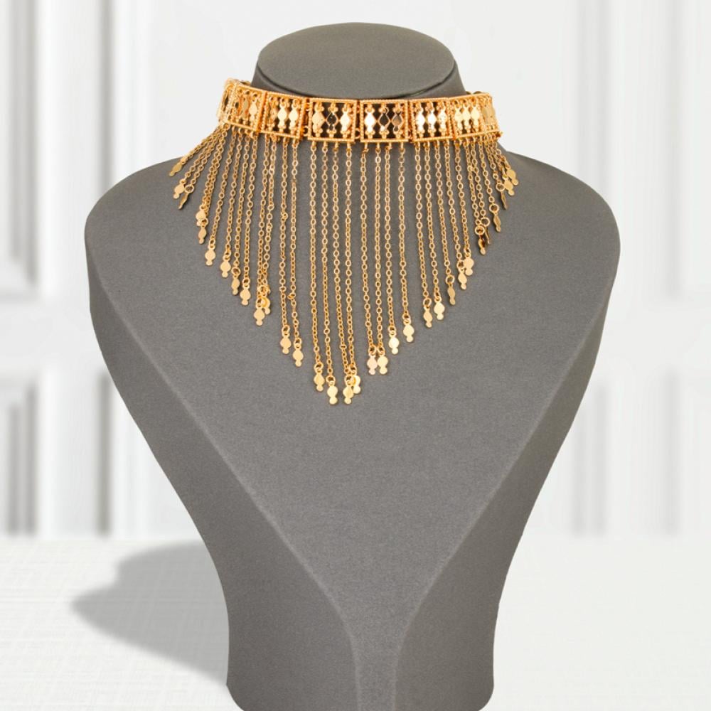 مزنط بديل الذهب لمسة ملكية هو خيارك المثالي لإطلالة أنيقة وفاخرة في كل مناسبة. تصميمه الذي يجمع بين الحلقات المتشابكة والتفاصيل الدقيقة، يمنحكِ إطلالة تتناغم بين الأصالة والحداثة. إنه أكثر من مجرد إكسسوار، بل هو قطعة فنية تتناغم مع كل لحظة من حياتكِ.